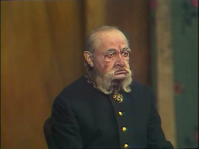 Кирилл Лавров - городничий - сцена из "Ревизора" - поздравление на мелодию песни из спектакля "Сколько лет, сколько зим";