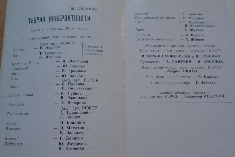«Теория невероятности» - Пьеса, (год написания: 1966)