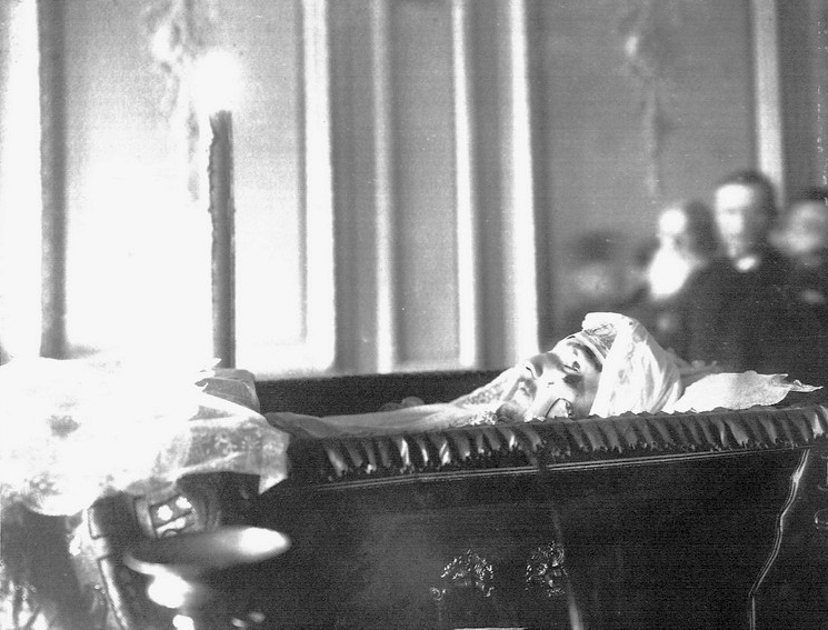 Н.Шмит в гробу. (на лице видны гематомы. февраль 1907г.)