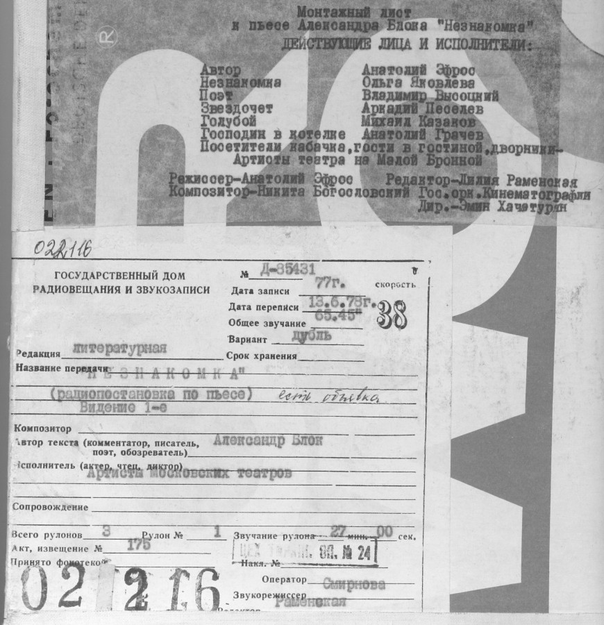Блок А - Незнакомка (инсц) 1-е и и 2-е видение (не полностью)