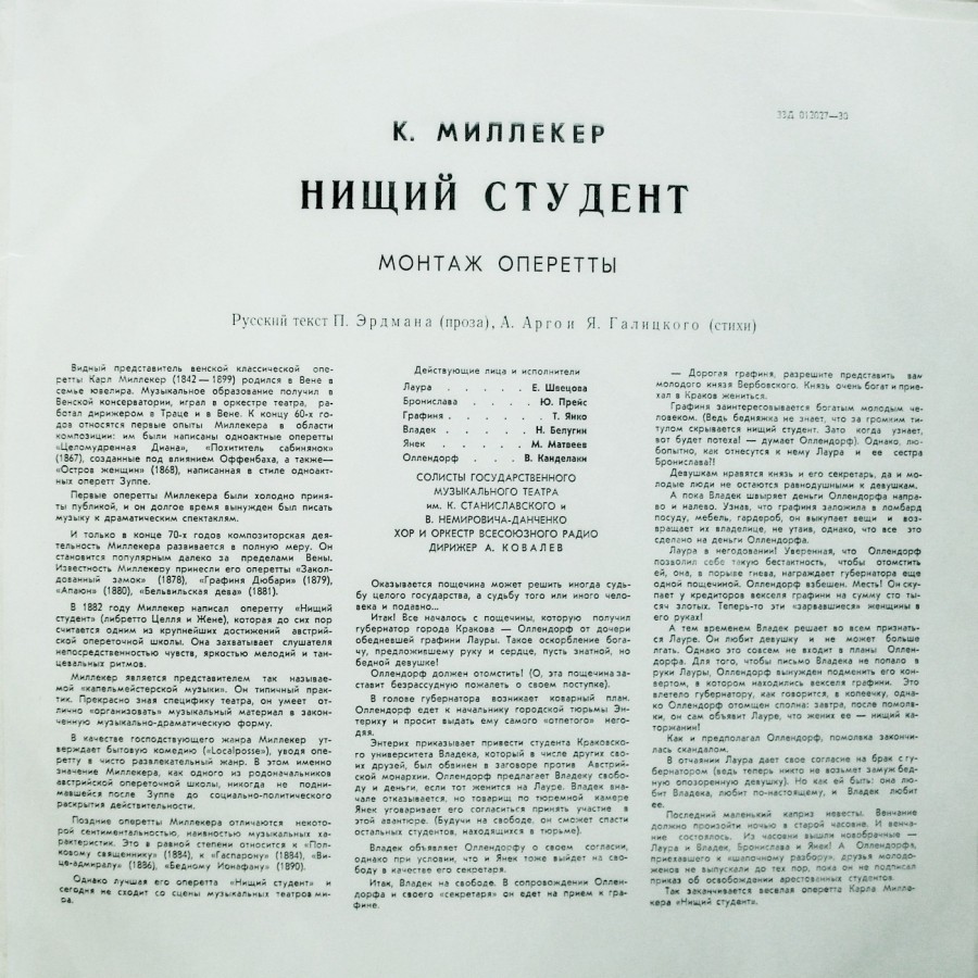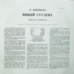 Миллёкер К. - Нищий студент - (оперетта), (исп.: Е.Коренев, Е.Швецова, Ю.Прейс, Т.Янко, Н.Белугин, М.Матвеев, В.Канделаки, Д.Демьянов, и др.), (Зап.: 1955г.)