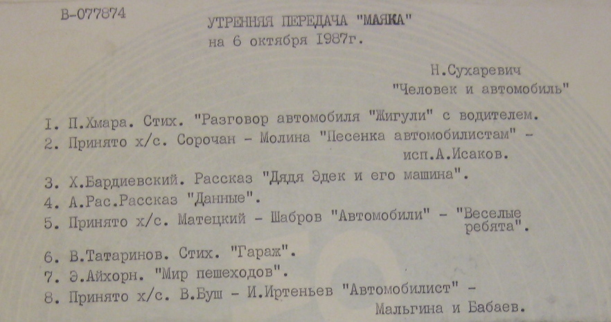 Утренняя передача Маяка (Человек и автомобиль зап.87г)