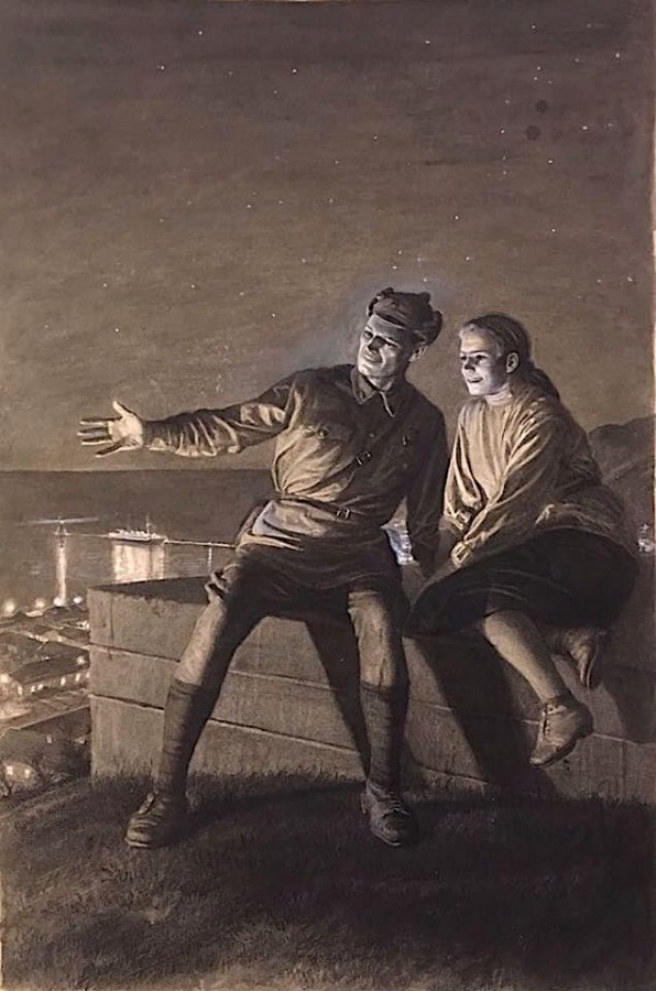 - эскиз обложки к роману "Цемент" (1951), Художник - Н.К. Соломин (1916-1999)