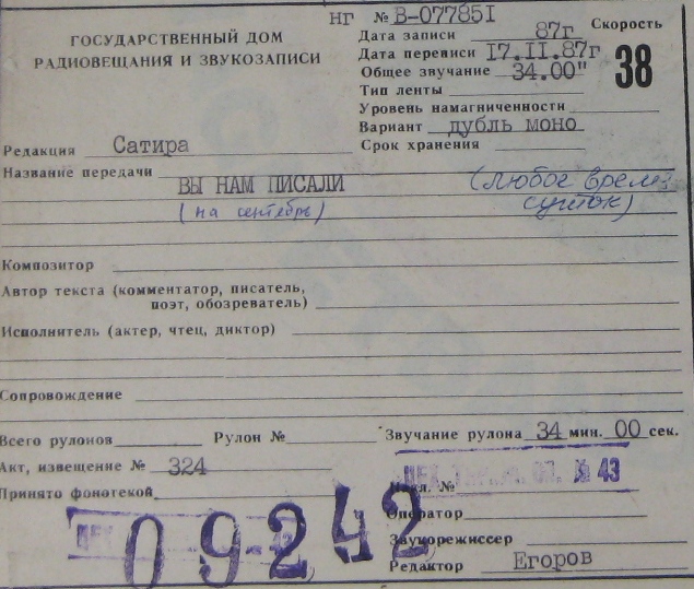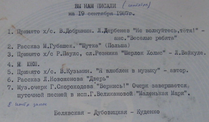Вы нам писали (Весёлые ребята, Добрынин, Новожёнов, Скороходов, Великанова, 03.09.87)