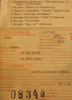 11:18 - Армен Б. Джигарханян - песня «Гадалка» (муз. Теодор Е. Ефимов, слова- Семион А. Осиашвили) - 3:29
