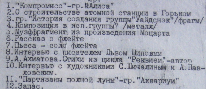 Вечерний курьер - (вед.: Татьяна Бодрова), (уч.: гр. Алиса, гр. Whitesnake, Л.Шилов, гр. Аквариум, и др.), (часть 1-я из 2-х), (Зап.: 1988г.)