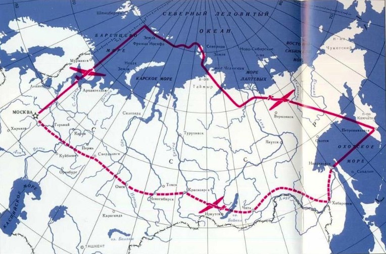 Беспосадочный перелёт Москва - остров Удд - беспосадочный перелёт советских авиаторов, совершённый 20-22 июля 1936 года на самолёте АНТ-25 в составе: командир экипажа - В.П. Чкалов, второй пилот - Г.Ф. Байдуков, штурман - А.В. Беляков. Осенью 1935 года 2-й пилот - лётчик Байдуков предложил командиру Чкалову организовать рекордный перелёт из СССР в США через Северный полюс и возглавить экипаж самолёта. Весной 1936 года Чкалов, Байдуков и Беляков обратились в правительство с предложением провести такой перелёт, но Сталин, опасаясь повторения неудачной попытки перелёта Леваневского (в августе 1935 года попытка перелёта С. Леваневского, Г. Байдукова и В. Левченко по маршруту Москва - Северный полюс - Сан-Франциско была прервана из-за неисправности), указал другой план маршрута: Москва - Петропавловск-Камчатский. Перелёт по маршруту Москва - Земля Франца-Иосифа - Северная Земля - Петропавловск-Камчатский - остров Удд стартовал 20 июля 1936 года и продолжался 56 часов 20 минут до посадки на песчаной косе острова Удд (ныне - остров Чкалова). До намеченного места посадки - Хабаровска - самолёт не долетел ввиду резкого ухудшения погоды (над Охотским морем экипаж вёл машину на высоте 50-100 метров из-за тумана). Экипаж остался на ночь у местной жительницы - Фетиньи Андреевны Смирновой. Чтобы снова взлететь, понадобилось построить деревянную ВПП длиной 500 метров. Эта полоса была построена силами дальневосточных пограничников, они же обеспечивали радиосвязь экипажа с Москвой. 28 июля полоса была закончена, и самолёт вылетел с острова в 8 часов 15 минут утра 2 августа 1936 года. Первая посадка на обратном пути была в Хабаровске. 6 августа экипаж вылетел из Хабаровска. По пути в Москву были сделаны посадки в Красноярске и Омске (8 августа). В Москву самолёт прилетел 10 августа 1936 года.