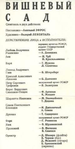 - Т.Жукова (в роли Вари), В.Высоцкий (в роли Лопахина), А.Демидова (в роли Раневской)