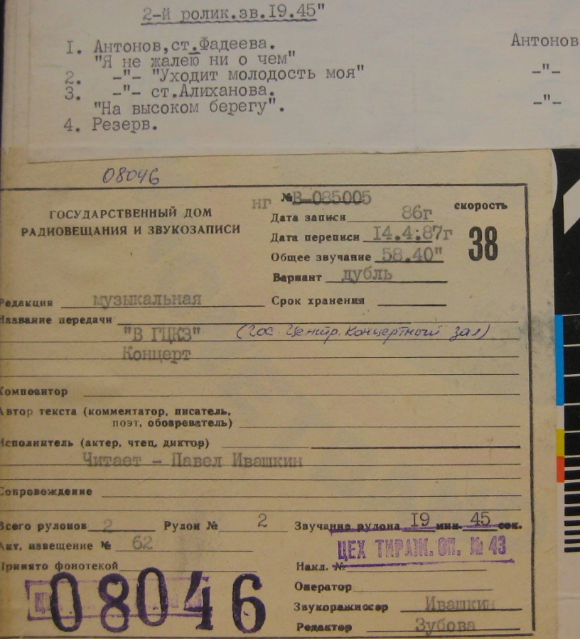 Радиопередача - Концерт в ГЦКЗ (зап.1986г ч2 из 2х)
