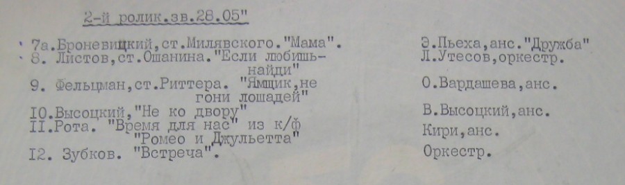 Всесоюзное радио - Встреча с песней вып. 507 (авт. и вед. В.Татарский. зап. 1987г ч2 из 2х)