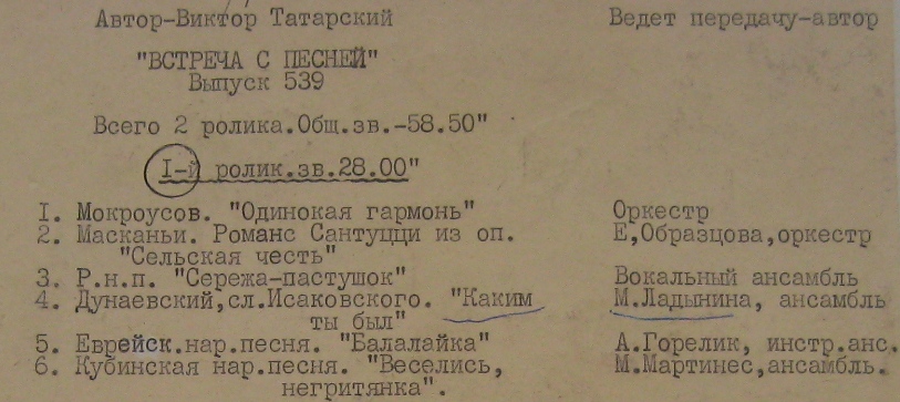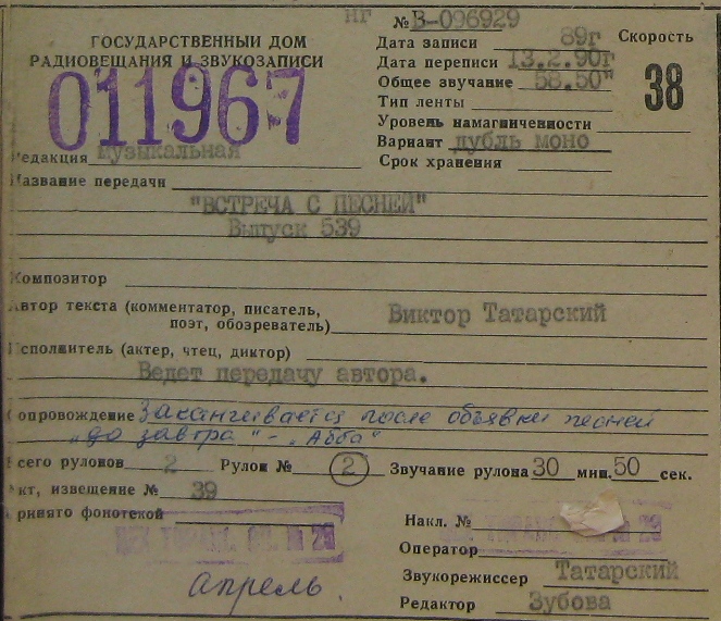 Татарский В - Встреча с песней вып. 539 зап. 1989г ч1 из 2х)