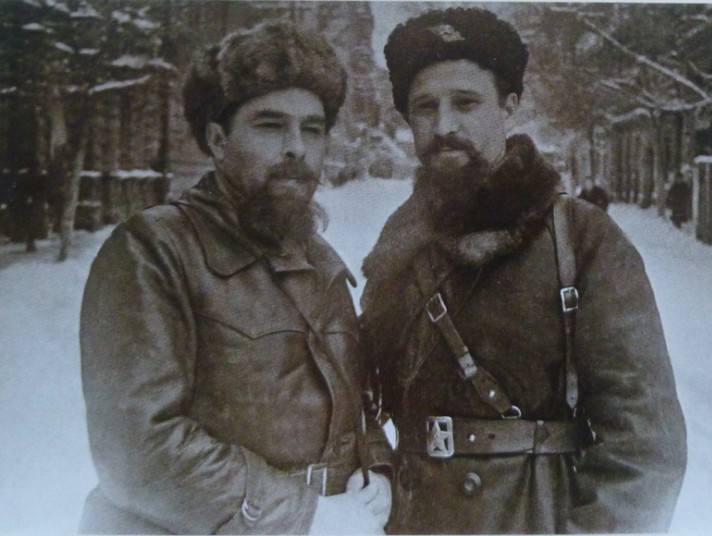 - Кондратюк Анатолий Герасимович (справа) и Медынский Ипполит Данилович - командир и комиссар 2-й партизанской бригады им. Сталина, 1944 год