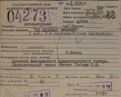 Звуковая дорожка спектакля Московского драматического театра (ныне Московский драматический театр на Малой Бронной) по одноимённой комедии Василя Минко.