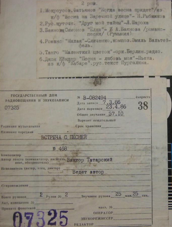 Татарский В - Встреча с песней вып. 468 зап.7.3.86г. ч1 из 2х)