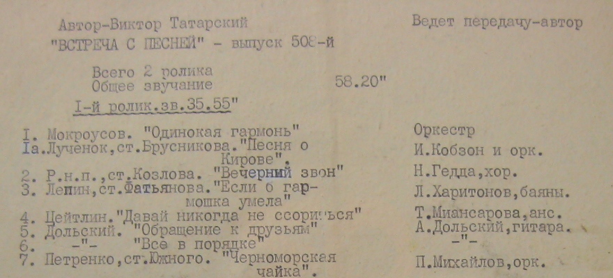 Татарский В - Встреча с песней вып. 508 зап. 1987г ч1 из 2х)