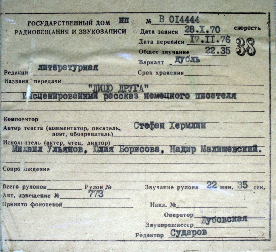 Запись предоставлена Николаем Кружковым,