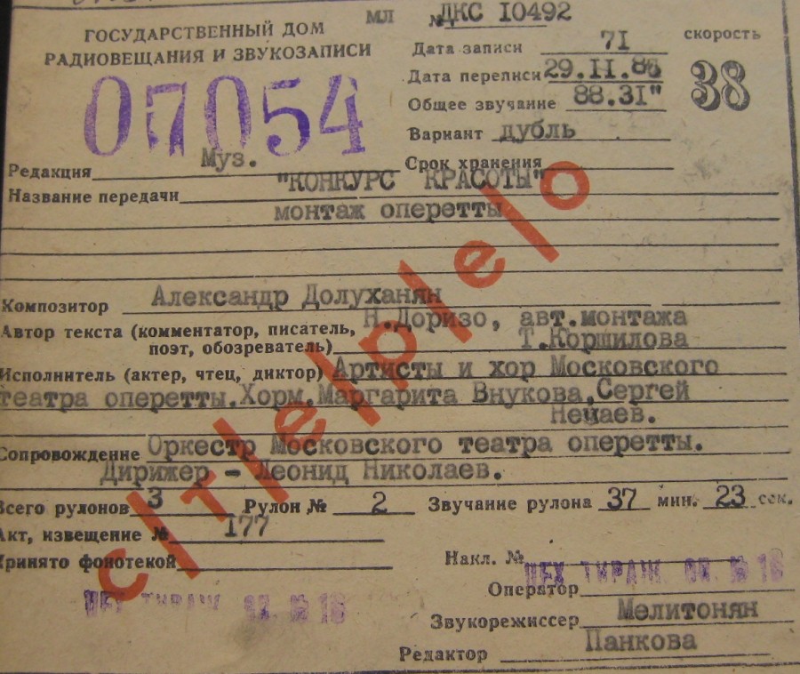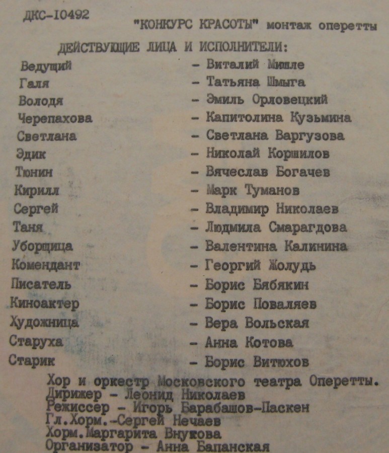 Доризо Н, Долуханян А - Конкурс красоты (монтаж оперетты арт.мос.тр.Оперетты зап.1971г)