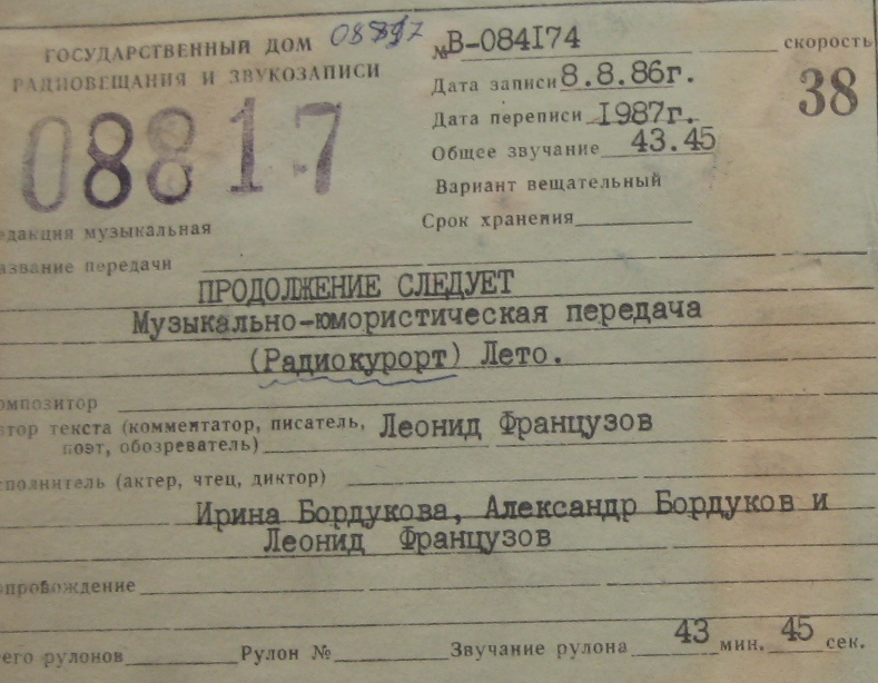 Всесоюзное радио - Продолжение следует (радиокурорт - лето, зап. 8.8.1986г)