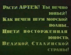 Звуковая дорожка документального фильма снятого Центральной студией кинохроники. Фильм приурочен К 15-летию детского оздоровительного лагеря «Артек» (Гурзуф, Крым).