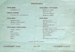Май 1979 года. После масштабного турне Элтон Джон (уже музыкант с мировым именем) решает выступить с концертами в CCCР (Ленинград и Москва). Концерты в СССР были частью тура Элтона Джона A Single Man и проводились в сопровождении перкуссиониста Рэя Купера. Идея тура Джона заключалась в том, чтобы избежать визуальной экстравагантности его предыдущих выступлений и сосредоточиться на пении и игре на фортепиано. Это была первая крупная гастроль западного рок-музыканта в Советском Союзе. Организатором гастролей Элтона Джона в Советском Союзе выступило Министерство культуры СССР. Элтон приехал в СССР с мамой, а в его культурной программе, кроме прочего, значились футбол (ЦСКА - «Динамо» Минск) и прогулка по Петергофу. Родителям, гостям и менеджерам, которые сопровождали певца в его зарубежной поездке, забронировали места в гостинице «Метрополь», а Элтону Джону - в гостинице «Интурист»: по-другому не получалось. Элтон Джон такого расклада не понял и заявил, что будет жить только вместе со всеми. Пожелание организатор гастролей выполнил ценой невероятных усилий. с Элтоном Джоном приехала съёмочная группа - после этой поездки на Западе вышел фильм To Russia... With Elton («В Россию... С Элтоном»). Незадолго до Элтона Джона, в декабре 1978 года, в СССР с гастролями приезжала группа Boney M, но то была всё-таки поп-музыка. Министерство культуры СССР организовывало гастроли исполнителей из социалистических стран. Обычно у зарубежных артистов с собой было около 2-х тонн оборудования. Элтон привёз 11-ть тонн - фантастика по тем временам ! В Москве концерты проходили в зале «Россия», служебный вход которого находился за забором, а в Ленинграде поклонники собирались прямо у дверей «Октябрьского». Концерт длился более двух часов. Своими воспоминаниями делится Василий Бурьянов (меломан):