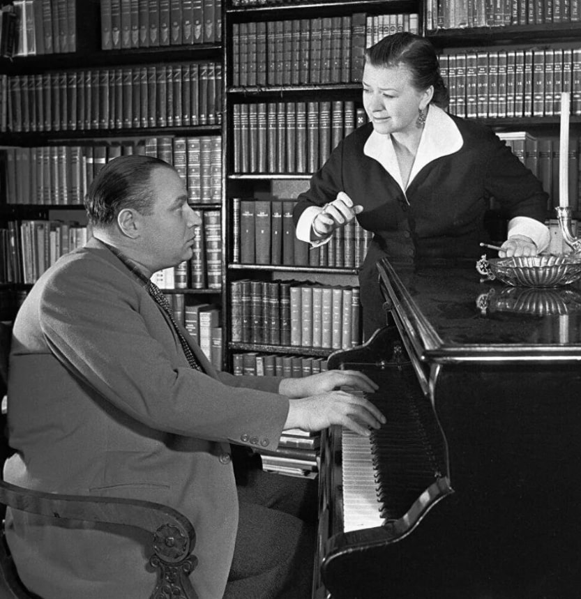 Мария Владимировна Миронова (25 декабря 1910 (7 января) 1911г., г. Москва - 13 ноября 1997г., г. Москва) - советская и российская артистка эстрады, театра и кино, народная артистка СССР (1991). Участница комедийного дуэта «Миронова и Менакер». Мать актёра, народного артиста РСФСР Андрея Миронова. В 1927 году Миронова окончила Театральный техникум им. А. В. Луначарского (ныне - Российский институт театрального искусства - ГИТИС) и была зачислена в труппу МХАТ 2-го, где служила до 1931 года. В 1928 году впервые вышла на сцену Колонного зала Дома Союзов как эстрадная актриса с рассказами Чехова. В 1932-1936 гг. - актриса Московского мюзик-холла. Одновременно играла в Московском театре оперетты и Московском театре транспорта (ныне - Московский драматический театр им. Н. В. Гоголя). В 1934 году дебютировала в кино в драме Константина Эггерта «Настенька Устинова». Однако известность ей принесла роль секретаря бюрократа Бывалова в комедии Григория Александрова «Волга-Волга» (1938). С 1938 по 1946 год служила в Московском театре эстрады и миниатюр (ныне - театр «Эрмитаж»). Во время войны выступала в актёрских фронтовых бригадах. В 1947 году недолгое время служила в Камерном театре под руководством А. Таирова. С 1948 года работала в дуэте со своим мужем, эстрадным актёром Александром Менакером. В 1952 года дуэт официально оформился в театр двух актёров, известный как «Миронова и Менакер». С 1954 года и вплоть до смерти Менакера они выступали в Московском театре эстрады.