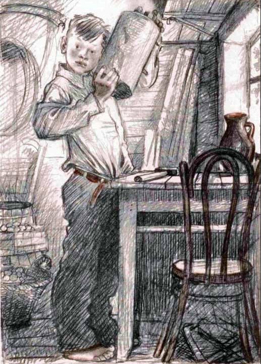 «Все летние дни у Вовки были заняты разными делами. Но когда вечером отец спрашивал за ужином, чем онзанимался, то Вовка откладывал ложку, задумывался и отвечал: