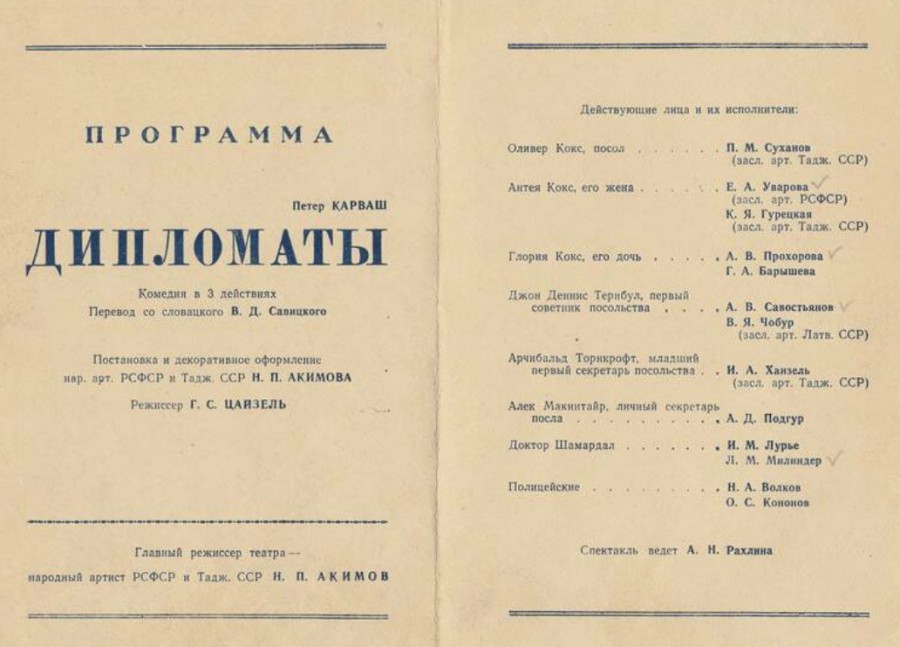 Сцены из спектакля Ленинградского Театра Комедии (ныне - Санкт-Петербургский академический театр Комедии им. Н.П. Акимова) по одноимённой пьесе словацкого драматурга Петера Карваш в постановке Николая Акимова. Премьера спектакля состоялась на сцене театра в 1958 году.