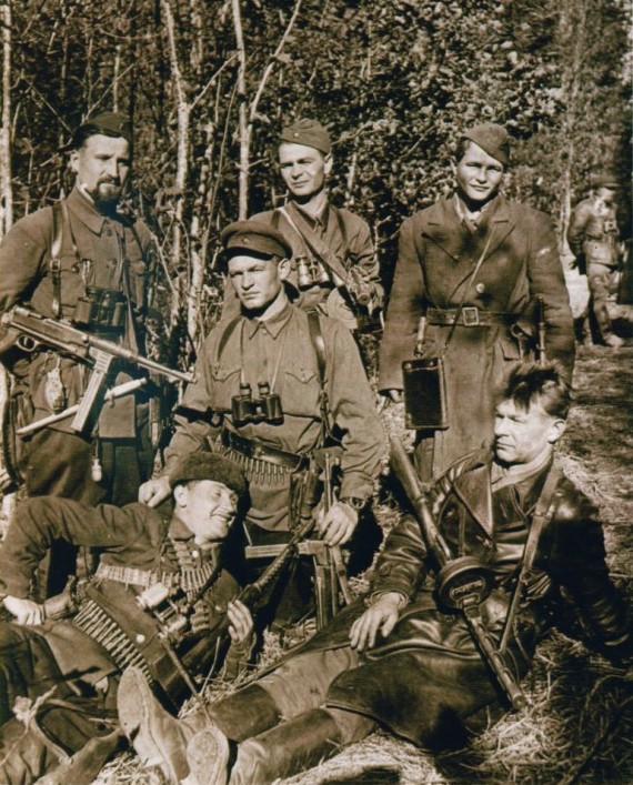 - Командный состав партизанского соединения № 44 (вверху слева командир соединения Анатолий Кондратюк), 1943 год