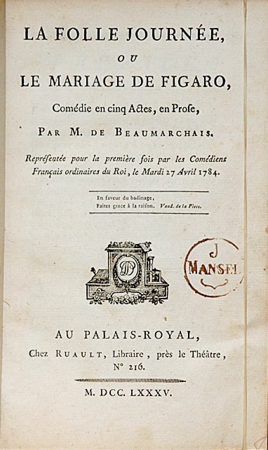 «Безумный день, или Женитьба Фигаро» (франц.: La Folle Journée, ou le Mariage de Figaro) - Пьеса, 1778 год
