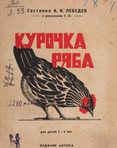 - (1) - «Курочка Ряба» - Русская народная сказка в литературной обработке Алексея Лебедева / Входит в книгу - «Курочка ряба : Сказки и рассказы Для детей 7-8 лет» / Составитель А.И. Лебедев С рисунками Т.Л. - М.: Издание автора, 1926 г.