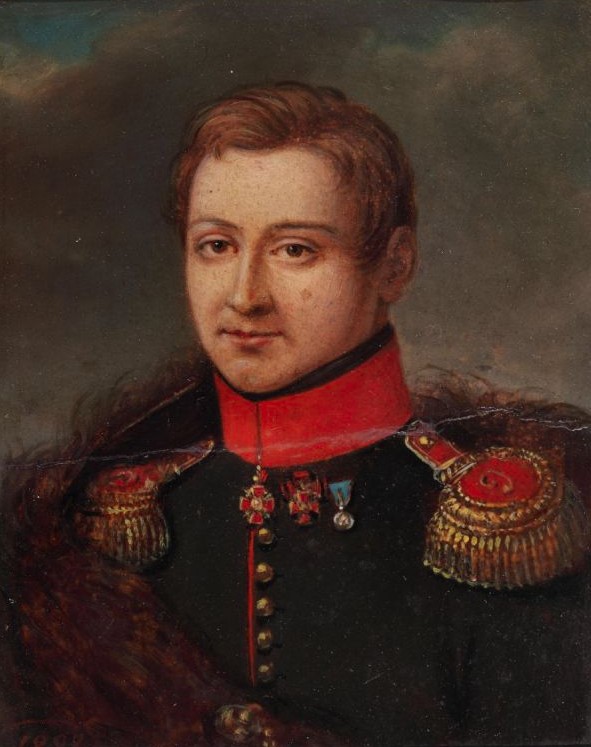 Сергей Иванович Муравьёв-Апостол (23 октября [3 ноября] 1795г., г. Санкт-Петербург - 13 [25] июля 1826г., г. Санкт-Петербург) - русский офицер, подполковник, один из руководителей движения декабристов. Сергей Иванович был сыном Ивана Матвеевича Муравьёва-Апостола, сделавшего карьеру придворного и дипломата при Екатерине II и Павле I. Начальное образование Сергей Иванович получил во Франции, в Россию впервые приехал в возрасте 12-ти лет. В 1812 году прервал обучение в институте Корпуса инженеров путей сообщения и поступил в действующую армию. Участвовал в Отечественной войне 1812 года и заграничном походе русской армии, был награждён за храбрость, проявленную на Березине, при Лютцене и во время взятия Парижа. Вернувшись в Россию, Муравьёв-Апостол продолжил карьеру в гвардии: к 1820 году дослужился до капитана гвардии. После восстания Семёновского полка был переведён в армию в чине подполковника, но без права на отставку и отпуск. Командовал батальоном в составе Полтавского, а позже Черниговского полков. Сергей Муравьёв-Апостол стоял у истоков движения декабристов и был в числе первых членов «Союза спасения» (1816) и «Союза благоденствия» (1818), а позже - одним из руководителей «Южного общества» наряду с Павлом Пестелем и Михаилом Бестужевым-Рюминым. По приговору Верховного уголовного суда был казнён на кронверке Петропавловской крепости на Артиллерийском острове вместе с другими руководителями декабристского движения (П. Пестель, К. Рылеев, М. Бестужев-Рюмин, П. Каховский) 13 [25 по новому стилю] июля 1826 года.