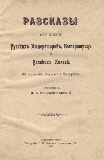 Рассказы и черты из жизни русских императоров, императриц и великих князей. - 2-е издание. - Санкт-Петербург : типография Э. Арнгольда, 1900 год.