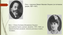 Михаил Михайлович Зощенко (28 июля (9 августа) 1894г., г. Санкт-Петербург - 22 июля 1958г., г. Сестрорецк) - русский советский писатель, драматург, сценарист и переводчик. Классик русской литературы. Остриё его сатирических произведений направлено против невежества, мещанского самолюбия, жестокости и других человеческих пороков.