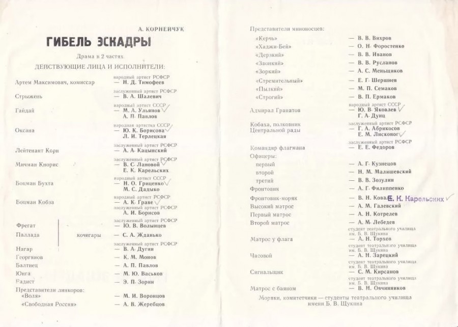 «Гибель эскадры» - Пьеса, 1933 год.