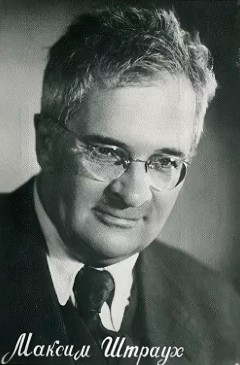 Максим Максимович Штраух (11 [23] февраля 1900г., г. Москва - 3 января 1974г., Москва) - советский актёр театра и кино, театральный режиссёр. Народный артист СССР (1965). Лауреат Ленинской (1959) и трёх Сталинских премий (1949, 1951 - дважды). В 1910-1918 гг. учился в Петропавловской гимназии в Москве. С 1916 года работал карикатуристом в театральном журнале «Рампа и жизнь». В 1919-1921 гг. служил в Красной Армии (фельдъегерь Фельдъегерского корпуса Всероглавштаба при Реввоенсовете Республики). С 1921 года - актёр Первого рабочего театра Пролеткульт. В 1924-1929 гг. - артист и режиссёр-ассистент фабрики «Госкино» в Ленинграде (ныне - киностудия «Ленфильм»). В 1929-1931 гг. - актёр и режиссёр Театра им. В.Э. Мейерхольда, с 1932 года - Московского театра Революции (ныне - Театр им. Вл. Маяковского; в 1938-1942 гг. - художественный руководитель). В 1950-1957 гг - актёр Государственного академического Малого театра Союза ССР, в 1957-1958 гг. - Московского драматического театра им. А.С. Пушкина, с 1958 года - вновь актёр и режиссёр Театра им. Вл. Маяковского. Творческим успехом Максима Штраух стало воплощение образа В.И. Ленина в спектаклях и в фильмах, поставленных кинорежиссёром Сергеем И. Юткевичем - «Человек с ружьём» (1938), «Яков Свердлов» (1940), «Рассказы о Ленине» (1958), «Ленин в Польше» (1965), и др..