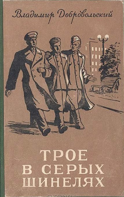 «Трое в серых шинелях - Пьеса / «Трое в серых шинелях - Роман, 1948 год / Главное произведение Добровольского, роман «Трое в серых шинелях», был изночально задуман как сознательный ответ на роман английского прозаика Джона Бойтона Пристли «Трое в новых костюмах» (англ.: Three men in new suits), переведённый на русский язык в 1946 году и показывающий разочарование вернувшихся со Второй мировой войны фронтовиков.