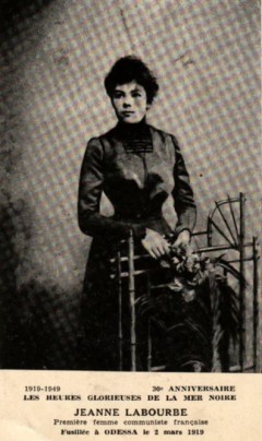 Жанна Мари Лябурб (франц.: Jeanne Labourbe) (08.04.1877г., коммуна Лапалис, регион Овернь, Франция - 02.03.1919г., г. Одесса) - организатор французской коммунистической группы в Москве, участница Гражданской войны. Родилась в крестьянской семье. В 1896 году в поисках работы приехала в Россию, была учительницей в городе Томашув-Мазовецки (Царство Польское). С 1903 года участвовала в революционном движении. В 1918 году работала в Центральной федерации иностранных групп при ЦК РКП(б), секретарь Французской коммунистической группы; участвовала в создании клуба «III-й Интернационал», члены которого вели революционную работу среди иностранных солдат и матросов. В феврале 1919 года Лябурб отправилась в Одессу, которая была в то время занята французскими войсками и Добровольческой армией. Став одним из руководителей «Иностранной коллегии» при Одесском подпольном комитете партии большевиков, Лябурб вела активную агитацию среди французских солдат и матросов в духе «интернационала и мировой революции». Так как военнослужащие французского корпуса вследствие агитации большевиков отказывались воевать против Советской России, французский генерал д’Ансельм отдал приказ в кратчайшие сроки найти и уничтожить агитаторов, работающих в их войсках. 1 марта 1919 года французам удалось арестовать всех членов «Иностранной коллегии», в том числе Лябурб, а уже 2 марта 1919 года все они были расстреляны французской контрразведкой.