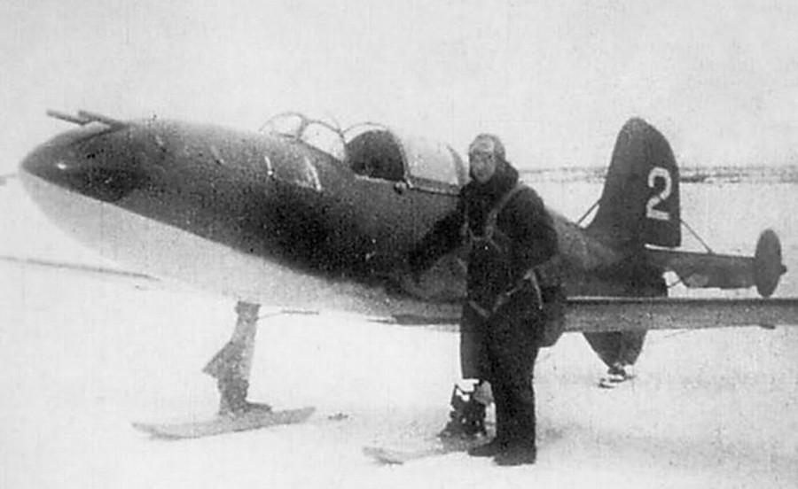 - на фото первый советский реактивный самолёт-перехватчик Би-2, 1942г. Планировалась партия Би-2 для фронта, но в серию не пошла, самолёты были уничтожены. На фото лётчик Бахчиванжи. Погиб при испытаниях, когда самолёт достиг околозвуковых скоростей.