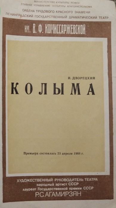 «Колыма» - Пьеса, 1988 год / Входит в журнал «Современная драматургия 1988`1», 1988г.