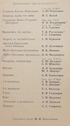 Сцена из радиокомпозиции спектакля Ленинградского государственного академического театра им. Ленсовета (ныне - Санкт-Петербургский академический театр им. Ленсовета) по одноимённой пьесе советского писателя Бориса Васильева в постановке Игоря Владимирова. В основе пьесы одноимённый рассказ написанный Васильевым в 1980 году. Премьера спектакля состоялась на сцене театра «23» ноября 1984 года. Радиокомпозиция спектакля подготовлена Ленинградским радио.