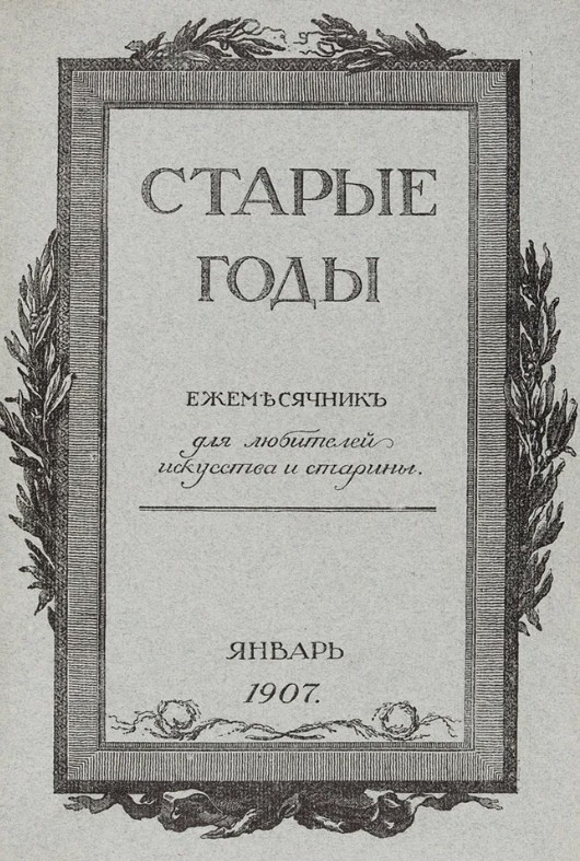 «Старые годы» - российский журнал, издававшийся в 1907–1916 гг. в Санкт-Петербурге (с 1914 г. - Петроград). Жанр: ежемесячник для любителей искусства и старины. Издатель: П.П. Вейнер. Главный редактор: В.А. Верещагин, с конца 1907 г. - Вейнер. Содержание: материалы по истории русского искусства, описания частных и общественных коллекций, информация об аукционах и частных продажах произведений искусства в России и за рубежом с указанием цен, сведения о деятельности музеев. Большое внимание в журнале уделялось проблемам сохранения памятников искусства и старины России. Среди сотрудников журнала: Г.К. Лукомский, П.П. Муратов, Н.К. Рерих, И.Э. Грабарь, В.Я. Курбатов, П.Н. Столпянский, А.Н. Кубе, С.Р. Эрнст, В.Я. Адарюков, И.Е. Бондаренко, В.А. Щавинский и другие. Всего вышло 120-ть номеров журнала, ежегодно осенью выходил тройной номер за июль-сентябрь, который, как правило, был тематическим. После Февральской Революции журнал прекратил своё существование. Последняя книжка за 1916 год вышла в марте 1917 года.