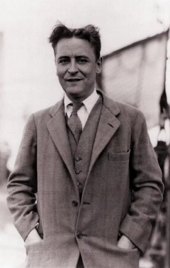 Фрэ́нсис Скóтт Кéй Фицдже́ральд (англ.: Francis Scott Key Fitzgerald) (24.09.1896г., г. Сент-Пол, Миннесота - 21.12.1940г., Голливуд) - американский писатель, крупнейший представитель так называемого «потерянного поколения» в литературе. Наибольшую известность Фицджеральду принёс роман «Великий Гэтсби», опубликованный в 1925 году, а также ряд романов и рассказов об американской «эпохе джаза» 1920-х гг.. Термин «эпоха джаза» или «век джаза» был придуман самим Фицджеральдом и обозначал период американской истории с момента окончания Первой мировой войны до великой депрессии 1930-х гг.. Фрэнсис Скотт учился в престижных учебных заведениях: в 1908-1910 гг. - в Академии Сент-Пола, в 1911-1913 гг. - в Newman School, в 1913-1917 гг. - в Принстонском университете. Во время учёбы в Принстоне Фрэнсис Скотт Фицджеральд играл в университетской футбольной команде, писал рассказы и пьесы, которые нередко побеждали в университетских конкурсах. К этому времени у него уже сформировалась мечта стать писателем и автором музыкальных комедий. В 1917 году, незадолго до выпускных экзаменов, Фрэнсис Скотт ушёл добровольцем в армию. В армии Фрэнсис Скотт сделал карьеру и дослужился до адъютанта командира 17-й пехотной бригады генерала Дж. А. Райана и выполнял обязанности секретаря генерала. В 1919 году Фицджеральд демобилизовался, некоторое время работал рекламным агентом в Нью-Йорке. 26 марта 1920 года Фицджеральд опубликовал роман под названием «По эту сторону рая» (This Side of Paradise), который сразу приносит Фицджеральду успех. За первой книгой в 1922 году Фицджеральд публикует второй роман «Прекрасные и проклятые» (The Beautiful and Damned). Выходит также сборник рассказов «Сказки века джаза» (Tales of the Jazz Age). В 1924 году Фицджеральд уезжает в Европу, сначала в Италию, потом во Францию. Живя в Париже, он знакомится там с Эрнестом Хемингуэем. В Париже Фицджеральд заканчивает и публикует роман «Великий Гэтсби» (The Great Gatsby, 1925). В 1937 году Фицджеральд решает стать сценаристом в Голливуде. В октябре 1939 года Фицджеральд приступил к написанию романа «Последний магнат» (The Last Tycoon, 1941), который остался незаконченным. За три года жизни в Голливуде Фрэнсис Скотт написал серию рассказов и статей, в основном автобиографического характера, опубликованных после его смерти в сборнике «Крушение» (The Crack-Up, 1945).
