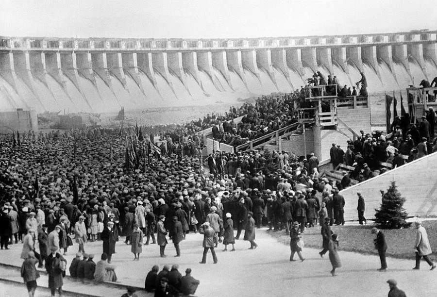 Митинг посвящённый открытию Днепрогэса (Днепровской гидроэлектростанции), 10.10.1932г.