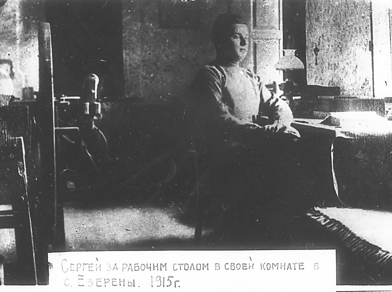 - С.Лазо за рабочим столом в своей комнате, с. Езерены, Бессарабия, 1915г.
