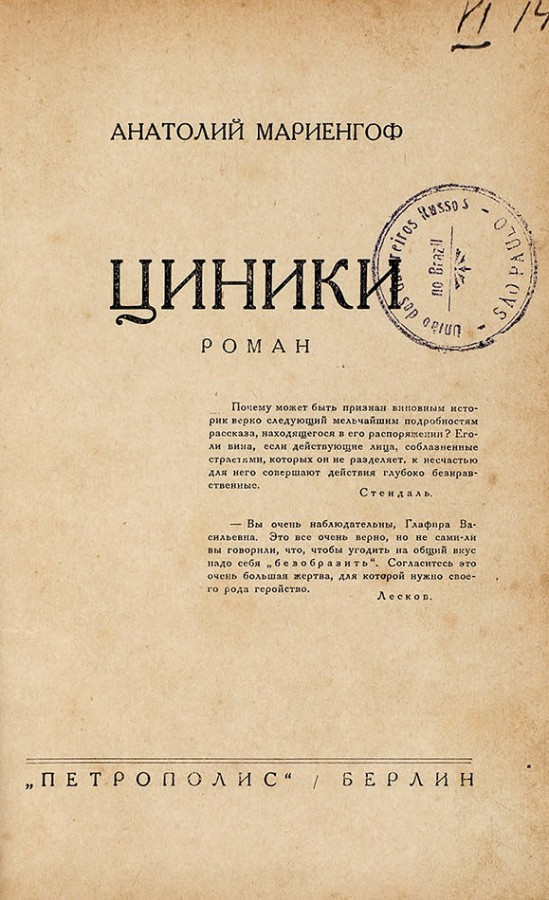 Анатолий Борисович Мариенгоф (24 июня [6 июля] 1897г., г. Нижний Новгород - 24 июня 1962г., г. Ленинград) - русский поэт-имажинист, теоретик искусства, прозаик и драматург, мемуарист.