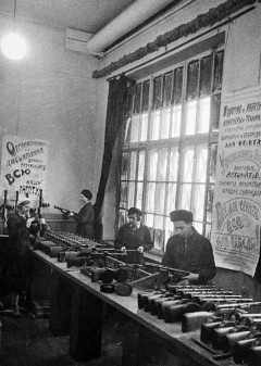 Рабочие Ленинградского участка собирают ППД Дегтярёва, 1942