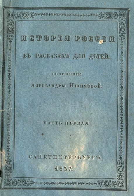 Cтраницы из книги русской писательницы Александры Ишимовой «История России в рассказах для детей» - самое популярное произведение этого автора. В прежние годы, и прежде всего в XIX - начале XX века, книга пользовалось неизменным успехом у юных читателей и издавалось многократно. В книге автор выражает взгляд православного русского человека на историю русского государства и доступным языком повествует об этом, охватывая исторический период с 800 года до XIX века.