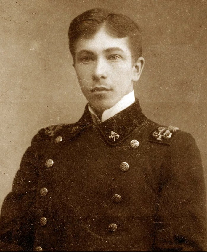 - Иллюстративное фото (студент Института Инженеров путей сообщения Александра I в неуставной тужурке с бархатным воротником и неуставным рисунком на пуговицах)