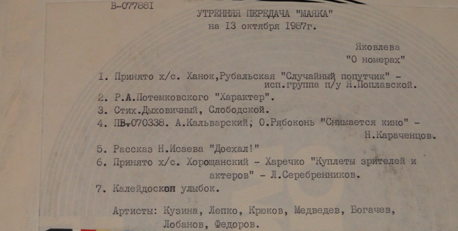 Утренняя передача Маяка (Кузина, Лепко, Лобанов, Поплавская, Ханок, Рубальская, Караченцов, Харечко, о номерах, 1987)
