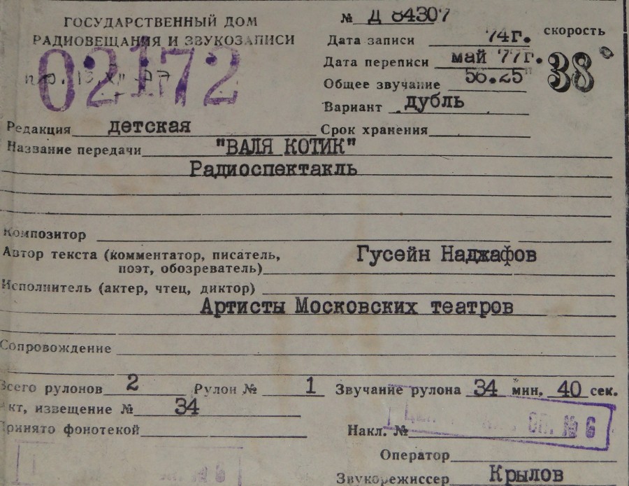 Запись предоставлена Николаем Кружковым,